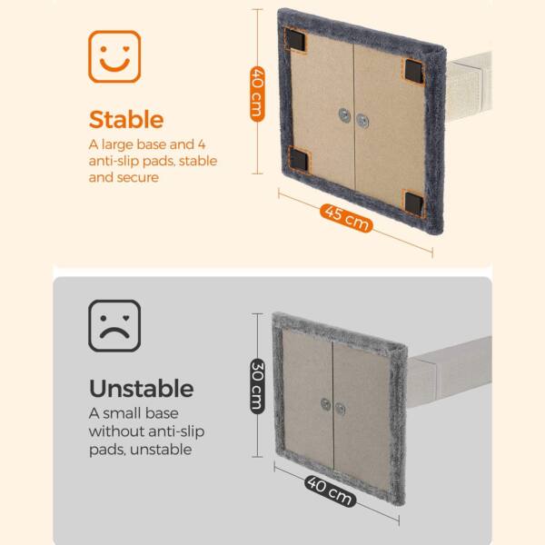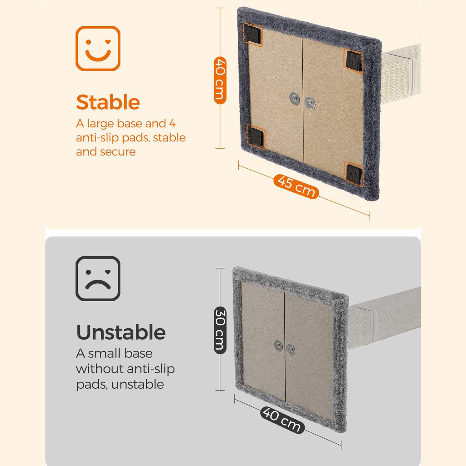 - Stabilumas: Platus pagrindas ir 4 neslystančios pagalvėlės išlaiko laipiojimo medį stabilų.