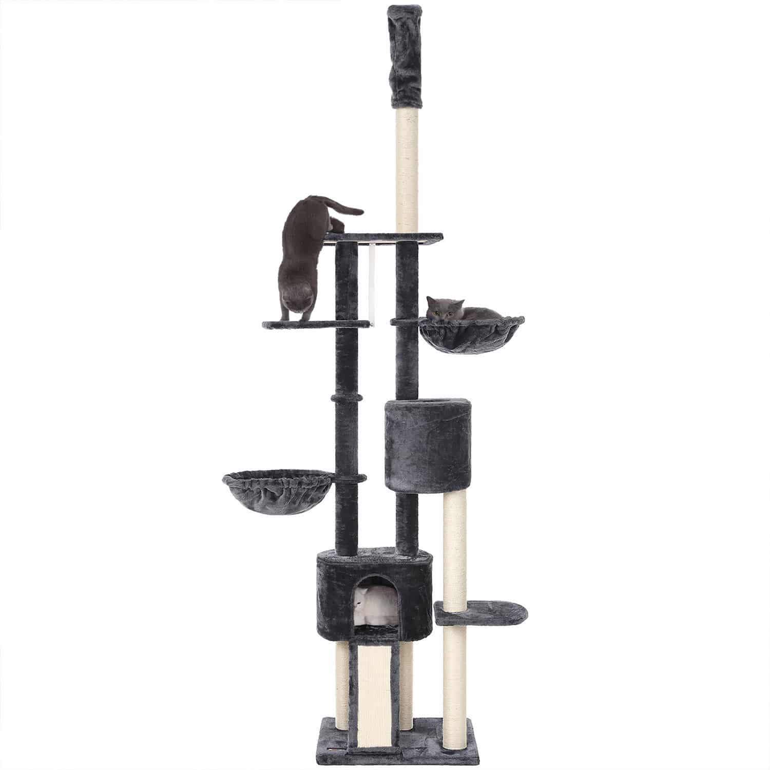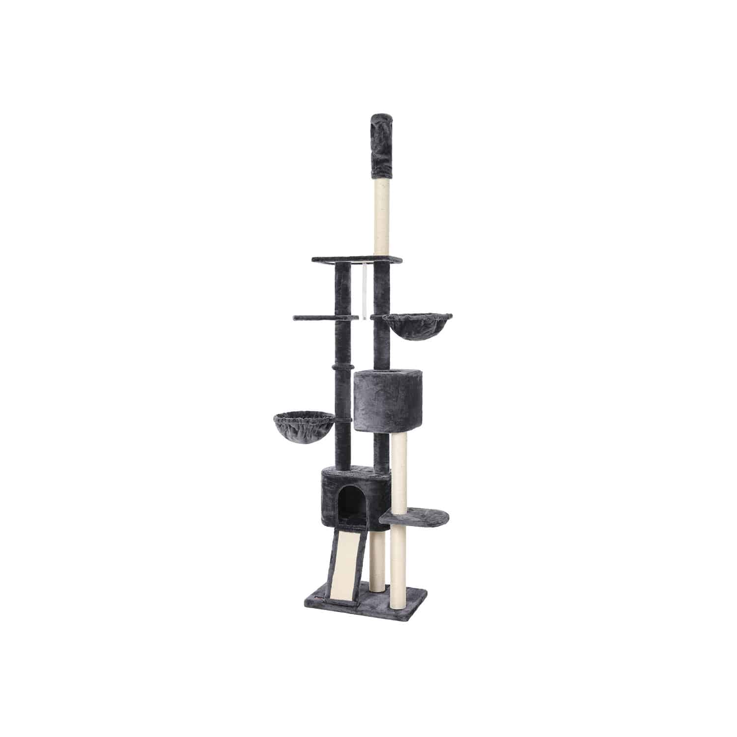 Draskyklė turi kelias platformas, kuriose jūsų katė galės laipioti, žaisti ir ilsėtis. Taip pat yra integruotos žaislinės pelės, kurios skatins jūsų katės aktyvumą ir smalsumą.