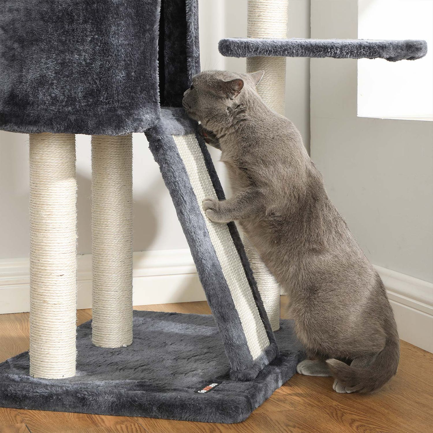 Kačių draskyklė, tamsiai pilkos spalvos, yra puikus pasirinkimas jūsų augintiniui. Ši draskyklė ne tik suteiks jūsų katei vietą žaisti ir ilsėtis, bet ir padės išlaikyti jūsų baldus nepažeistus.