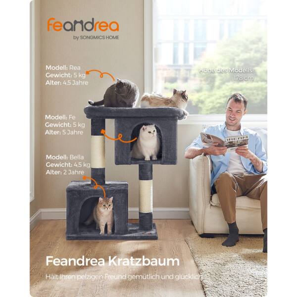 Draskyklė pagaminta iš aukštos kokybės medžiagų, tokių kaip medžio drožlių plokštė (MDP), pliušas ir sizalis, užtikrinančių ilgaamžiškumą ir patogumą jūsų katei.