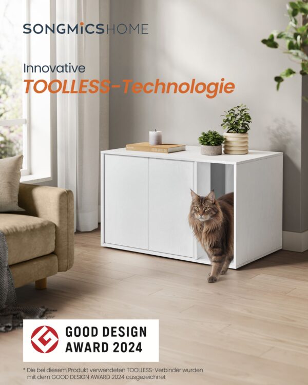 Šis kačių namelis, sniego baltos spalvos, yra puikus pasirinkimas jūsų augintiniui. Pagamintas iš aukštos kokybės medžio drožlių plokštės, jis suteikia patogią ir saugią vietą jūsų katei.