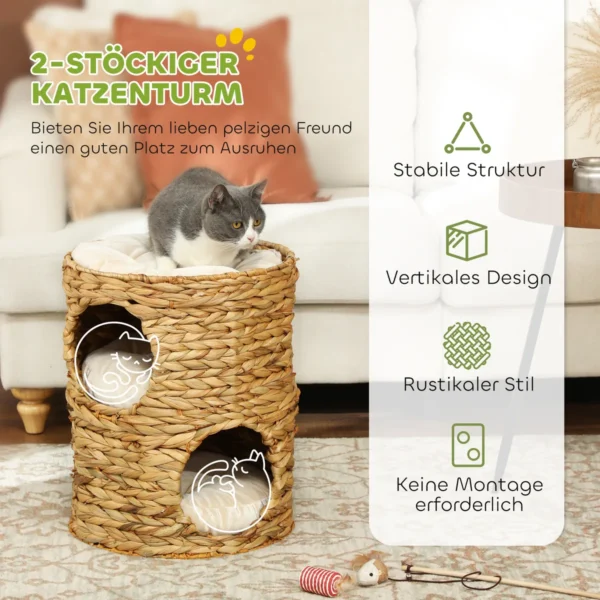 PawHut kasymosi statinė greitai taps nauja mėgstamiausia jūsų katės vieta! Šiame jaukiame draskymo bokšte yra du jaukūs urvai – ideali vieta atsipalaiduoti ir pasislėpti. Gerai paminkštinta apžvalgos platforma draskymo bokšto viršuje yra puikus stebėjimo postas smalsioms katės akims. Dėka natūralių medžiagų, kačių kraiko dėžė puikiai tinka bet kokiam kambario dizainui ir siūlo ir smagu žaisti dieną, ir saugią vietą miegoti naktį.