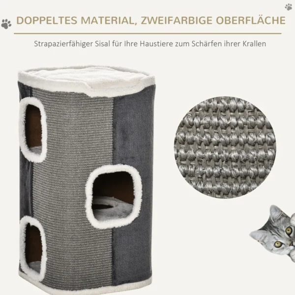 Palepinkite savo mylimą katę prabangiu PawHut kačių kasymo stulpeliu, specialiai sukurtu patogiam ir sveikam jūsų katės gyvenimui. Su minkštu, jaukiu dangteliu jis puikiai tinka snūduriuoti ir atsipalaiduoti. Trys tarpusavyje sujungti urvai kviečia leistis į įdomias pažintines keliones, o sizalio paviršius siūlo idealias įbrėžimų galimybes. Būtinas kiekvienam kačių mylėtojui, norinčiam pasiūlyti savo katei rojų žaisti, miegoti ir slėptis.