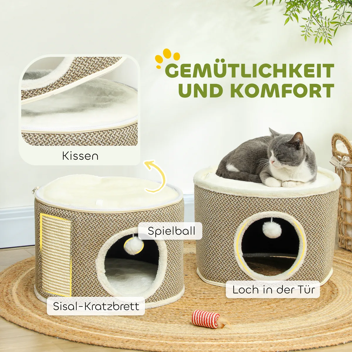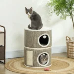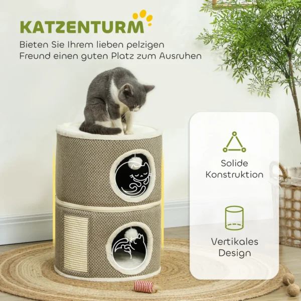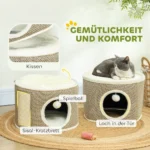 - ✔ Trijų pakopų dizainas su slėptuvėmis ir pliušiniu viršumi žaidimui ir poilsiui
