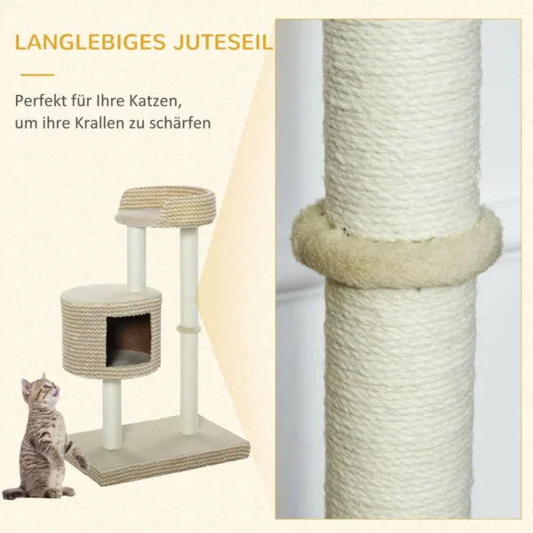 Šiame „Pawhut“ daugiafunkciniame centre yra natūralių džiutu apaugusių laipiojimo medžių, minkštas ir patogus butas ir lakštai. Kačių draskyklės naudingos ir augintiniui, ir šeimininkui, nes suteikia kačių norą kapstyti nagus ir laipioti bei apsaugoti jūsų kilimus ir namų baldus nuo pažeidimų. Ilsėkitės, žaiskite, mankštinkitės, jūsų katės gali praleisti visą dieną. Patogus įrenginys jūsų pūkuotiems draugams.
