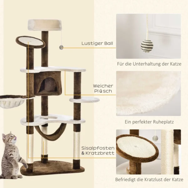 Universalus draskymasis su miegamuoju urvu, pliušiniu žaidimo kamuoliu, 2 hamakais ir daugybe kitų detalių! Dėl daugybės slėpimosi, glaustymosi ir žaidimo galimybių jūsų pūkuotiems draugams daugiau niekada nebus nuobodu. Tačiau įbrėžimas taip pat suteikia pakankamai vietos poilsiui. Kačiukai ir katės gali jaustis tikrai patogiai ant švelnaus, švelnaus pliušinio užvalkalo. Jūsų stulpelis yra labai tvirtas ir lengvai sukonfigūruojamas. Rojus jūsų keturkojams draugams.