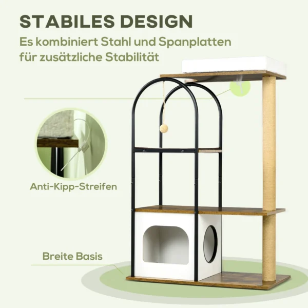 Puikios katės pramogos su PawHut draskymu! Keturių lygių ir 118,5 cm aukščio jis siūlo jūsų augintiniui tikrą laipiojimo rojų. Jaukus kačių medžio namelis viršutiniame aukšte ir dėžė su dviem įėjimais ant grindų idealiai tinka 1-2 katėms iki 5 kg. Sizalio virve apvynioti draskymo stulpeliai idealiai tinka pagaląsti nagus ir atitraukti katės dėmesį nuo baldų. Pakabinamas žaidimų kamuolys suteikia papildomos pramogos.