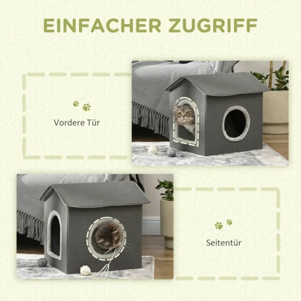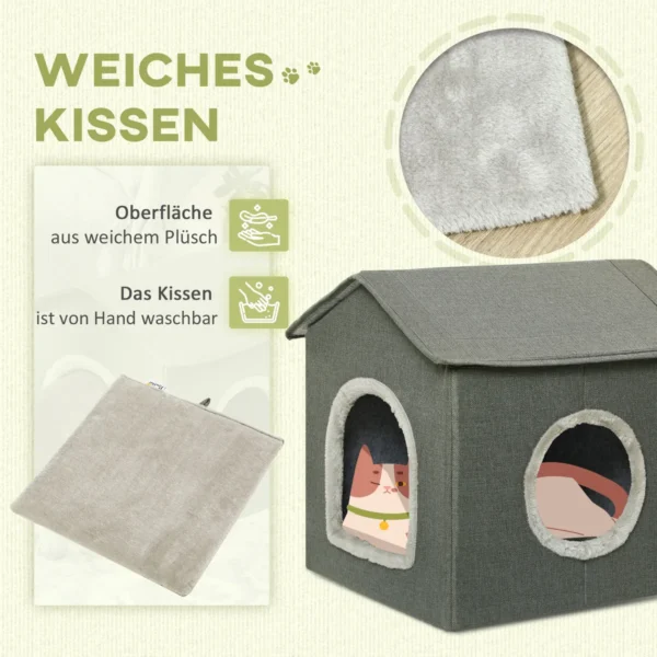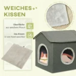 Suteikite savo augintiniui savo gyvenamąją erdvę su šiuo PawHut kačių urvu. Modernus dizainas papildo jūsų esamą dekorą ir gali būti naudojamas svetainėse, koridoriuose, miegamuosiuose ar bet kurioje kitoje namo patalpoje. Jaukus ir saugus kačių urvas puikiai tinka katėms susirangyti, nusnūsti ar žaisti. Šis kačių guolis, skirtas miegui, yra gražus ir praktiškas sprendimas jūsų augintinio poreikiams patenkinti. Kartu su minkšta pagalvėle.