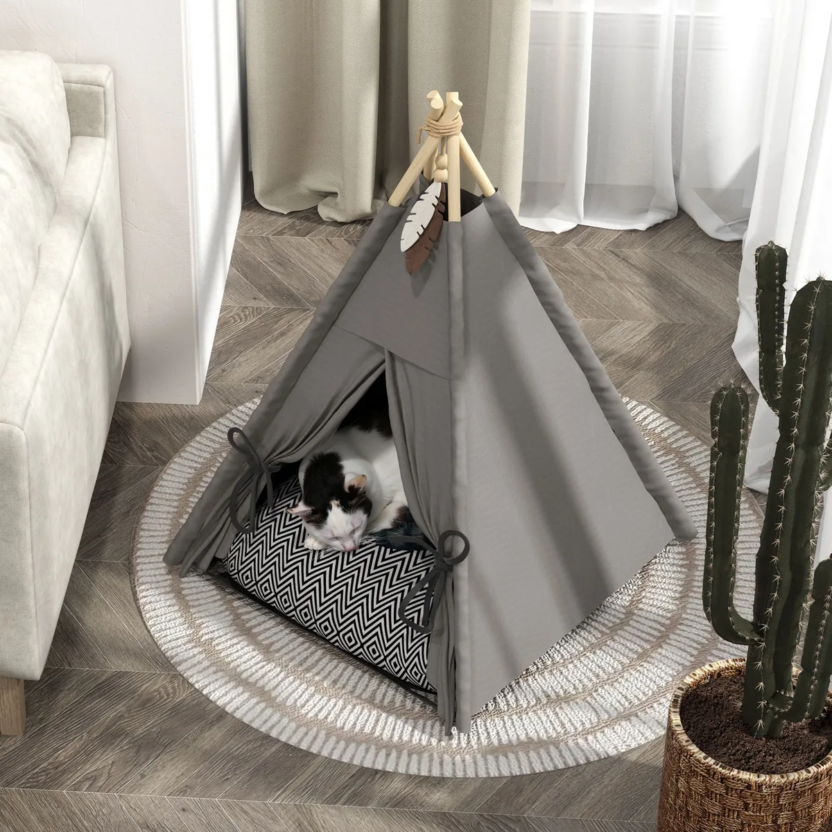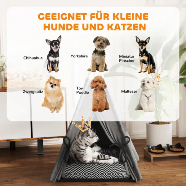 Šioje juokingo dizaino palapinėje gali tilpti ir katės, ir maži šunys. Ši PawHut kačių lova ne tik atrodo stilingai, bet ir suteikia jūsų augintiniui jaukią poilsio ir atsitraukimo vietą. Minkšta kačių baldų pagalvėlė užtikrina saugumą ir atsipalaidavimą. Jūsų keturkojui tai patiks.