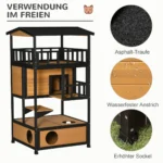 Mūsų keturių aukštų kačių namelis iš Pawhut idealiai tinka mažoms aksominėms letenėlėms. Katės namelis turi asfaltuotą stogą ir vandeniui atsparius dažus, todėl yra atsparus vandeniui ir oro sąlygoms. Namuose yra trys kačių urvai, šokinėjimo platformos, durys ir smagus įėjimas jūsų katei. Apatinėje ertmėje galima įdėti kraiko dėžę. Šis kačių namas yra nuostabūs namai jūsų katėms.
