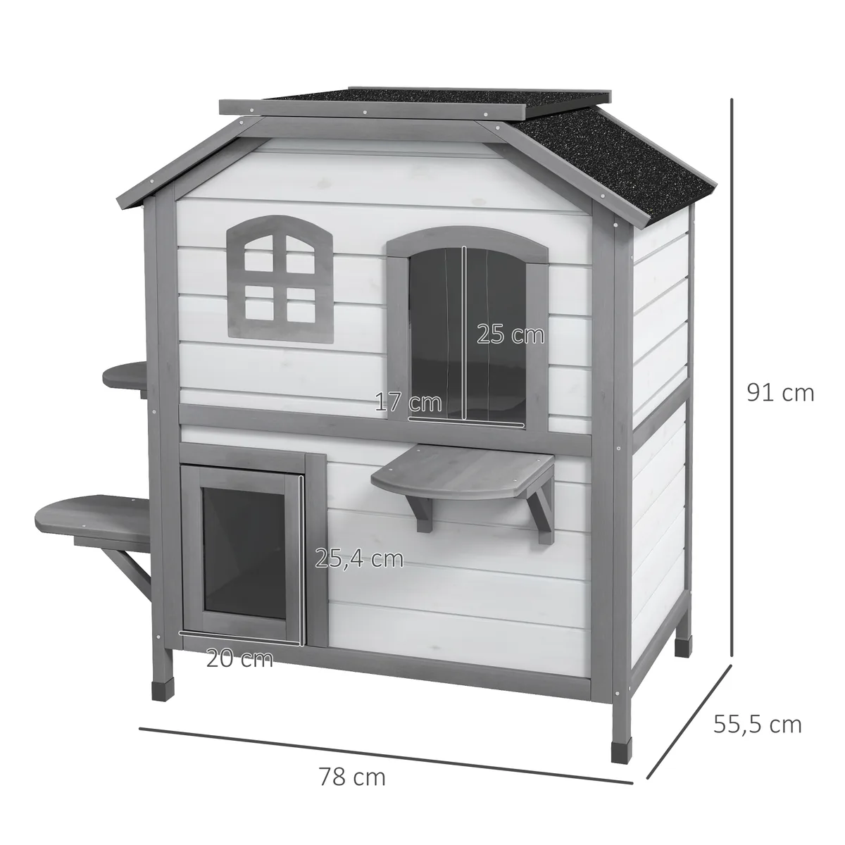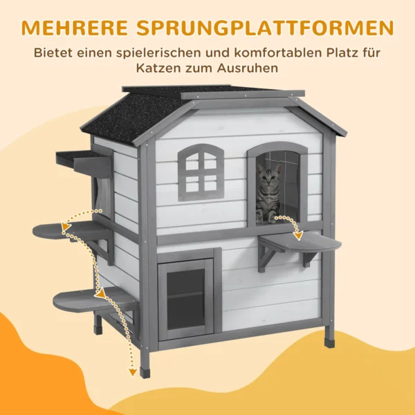 Jūsų katėms tikrai patiks šis nuostabus kačių namas iš PawHut! Stogas lengvai atidaromas, kad būtų lengva valyti ir gerai vėdinti. Eglės masyvo ir vandeniui atsparių dažų bei asfaltuoto stogo dėka kačių namas idealiai tinka vidaus ir lauko erdvėms. Stilingas ir funkcionalus, šis namelis bus nauja mėgstamiausia jūsų kačių vieta.