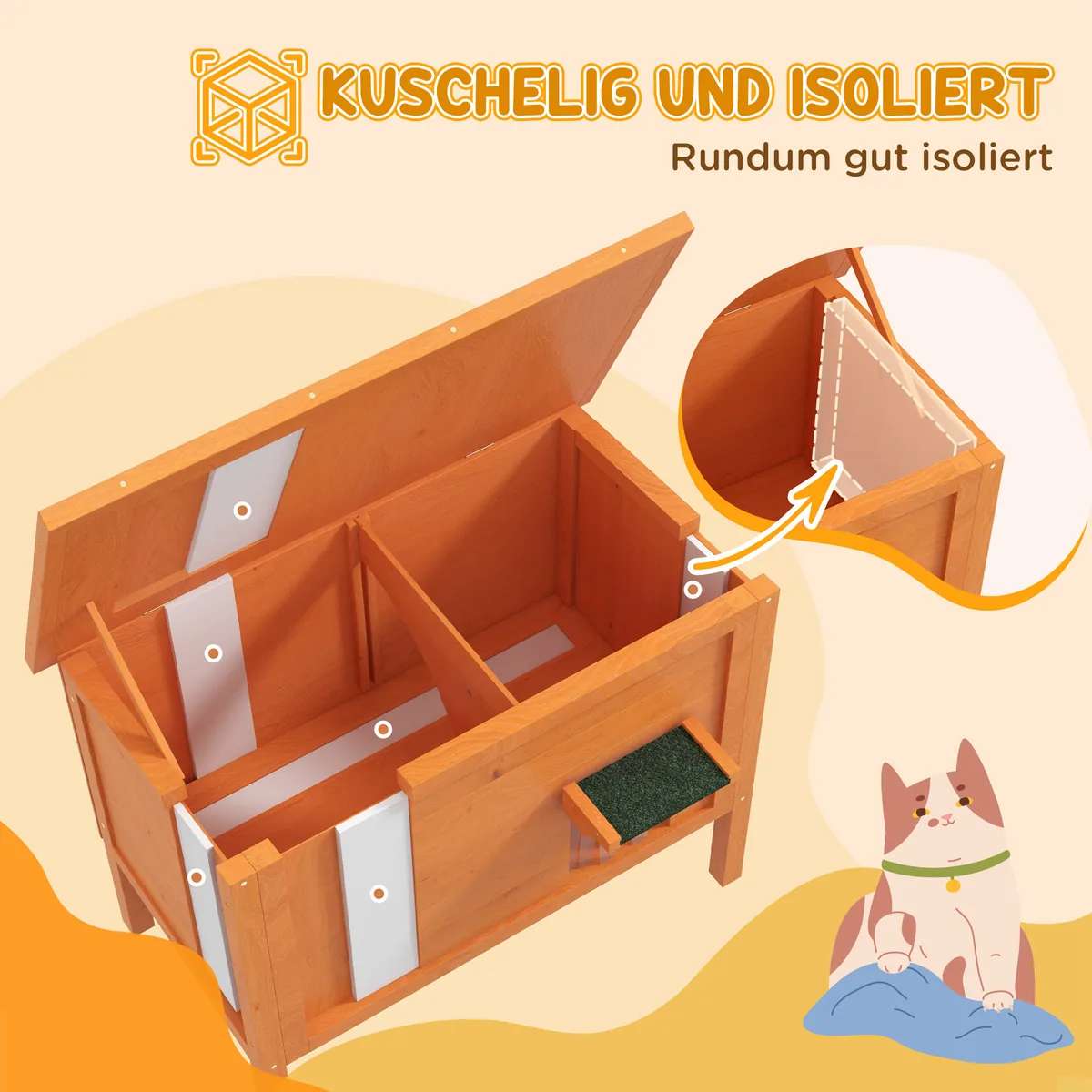 Sukurkite savo katei jaukią poilsį mūsų PawHut kačių namelyje. Dėl savo unikalaus dizaino jis siūlo jūsų mylimam augintiniui jaukią poilsį. Visapusiška izoliacija sukuria patogią erdvę ir užtikrina, kad jūsų katei visada būtų šilta. Turėdamas mažų gyvūnų namelio langą ir priekines duris, jūsų keturkojis draugas gali ateiti ir išeiti kaip nori.