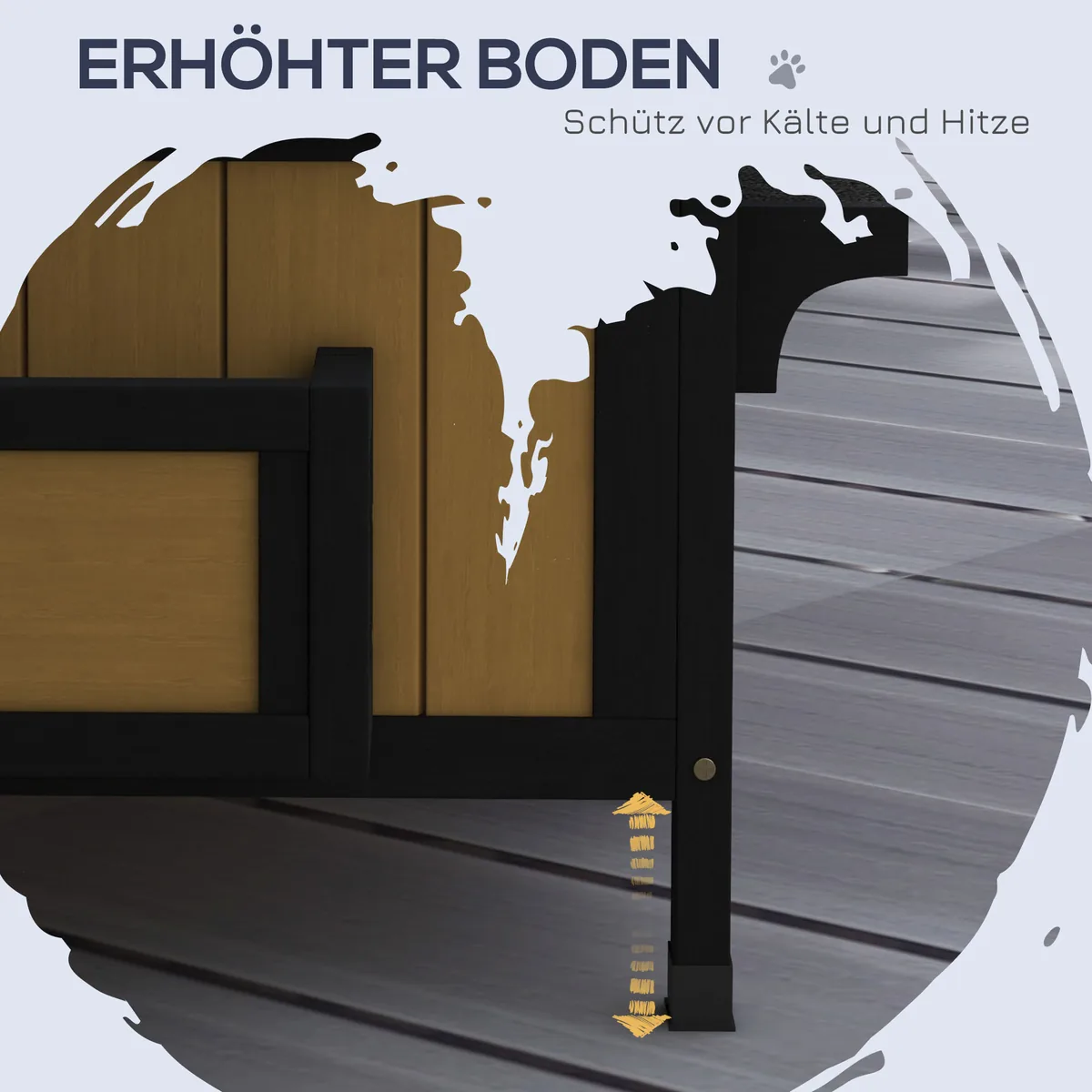 Kačių namelis PawHut 96x65x85,5cm., šviesiai rudos/juodos spalvos