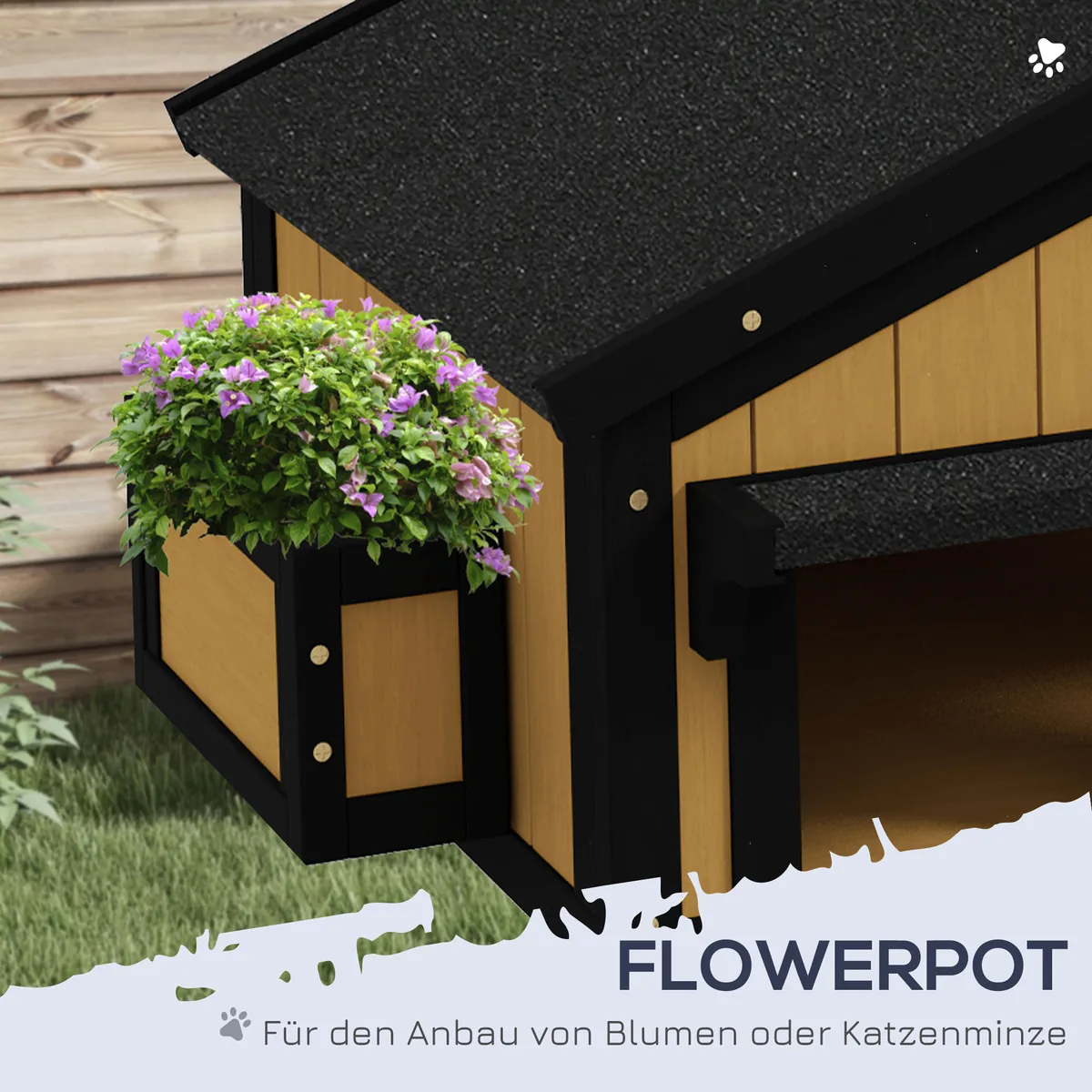 Nesvarbu, ar turite katę, kuri didžiąją laiko dalį praleidžia lauke, ar norite suteikti slėptuvę lauke esančioms katėms, šis erdvus „PawHut“ lauko kačių namelis yra puikus pasirinkimas! Jūsų mylimi pūkuoti kompanionai gali ten atsipalaiduoti ir rasti jaukią vietą atsitraukti. Jame yra asfaltuotas stogas, apsaugantis nuo lietaus ir saulės, kad katės jame jaustųsi patogiai tiek žiemą, tiek vasarą, visada būtų sausos ir saugios.