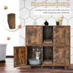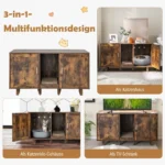 Kačių tualetas 120x52x65cm, rudos spalvos – funkcionalus ir erdvus sprendimas jūsų augintiniams. Šis daugiafunkcinis kačių baldas ne tik suteikia kačiukams privatumo bei komforto, bet ir gali būti naudojamas kaip televizoriaus stovas ar šoninis staliukas.