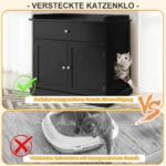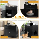 Kačių tualetas 76x53x73,5 cm juodos spalvos – funkcionali ir patogi erdvė jūsų katei. Šis kraiko dėžės namelis skirtas užtikrinti privatumą, sumažinti kvapus ir palaikyti tvarką namuose. Dėl daugiafunkcinio dizaino jis gali būti naudojamas kaip kraiko dėžė, kačių lizdas ar šoninis staliukas.