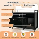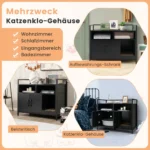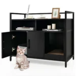 Kačių tualetas 89x45x74,5 cm juodos spalvos – praktiškas sprendimas katės kraiko dėžei paslėpti ir kvapų kontrolės užtikrinimui. Tinkamas naudoti kaip kraiko dėžės aptvaras arba sandėliavimo spintelė, jis puikiai integruojasi į įvairias erdves, tokias kaip svetainė, prieškambaris ar miegamasis.
