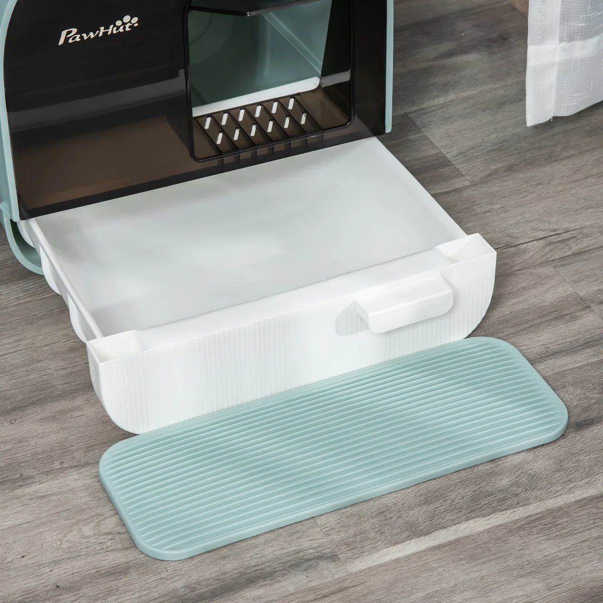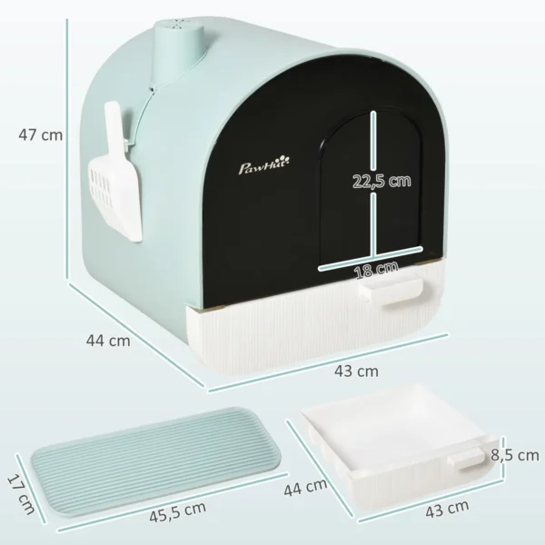 Ši PawHut kačių kraiko dėžutė suteikia jūsų katei patogų privatumą ir užtikrina, kad ji jaustųsi patogiai vykdydama savo verslą. Sklandžiai einančios durelės ir komplekte esantis oro filtras neleidžia sklisti nemaloniems gandams. Dėl ištraukiamo barstymo skyriaus ir pridedamo barstymo kaušelio valyti ypač lengva. Be to, malonios pastelinės spalvos ir įmantri korpuso forma tinka beveik bet kokiam interjero stiliui.