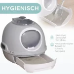 - ✔ Kačių kraiko dėžė su dangteliu suteikia katei privatumo
