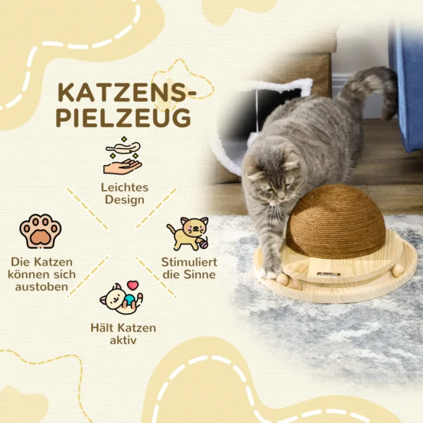 Šis kačių žaislas iš PawHut skatina natūralų kačių smalsumą ir priverčia jas atidžiai apžiūrėti medinius kamuoliukus. Kol jūsų katė „vejasi“ kamuoliukus priekinėmis letenomis, ji laikosi užpakalinėmis kojomis. Tai išlaiko juos fiziškai aktyvius ir skatina jų tinkamumą. Pabarstykite šiek tiek katžolių ant takelio, kad būtų dar smagiau. Leiskite savo katei valandų valandas linksmintis su šiuo žaislu.