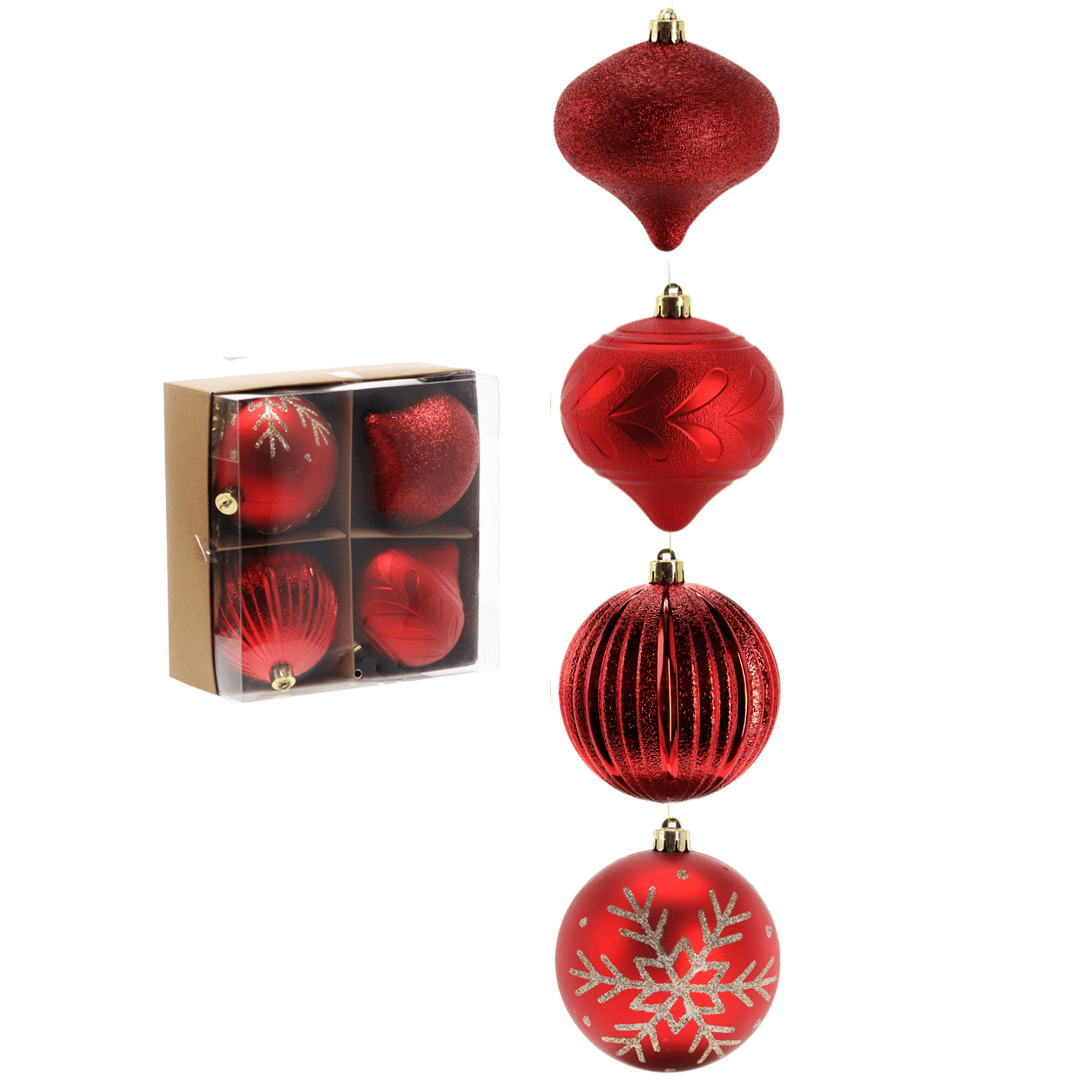 Kalėdiniai žaisliukai eglutei 10cm, 4 vnt. raudonos spalvos