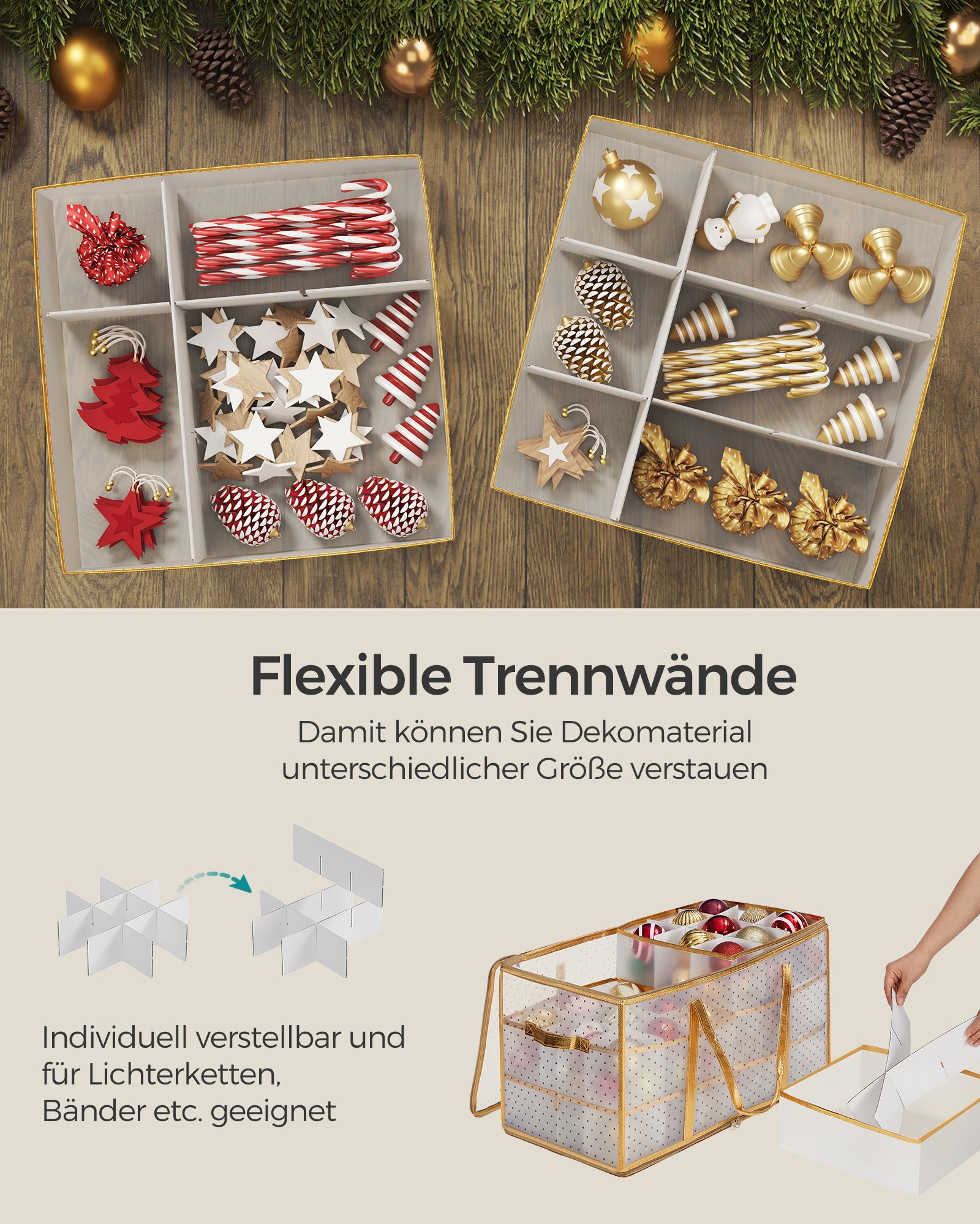 Kalėdų Papuošalų Laikymo Dėžutė – Auksinė Elegancija Jūsų Namams