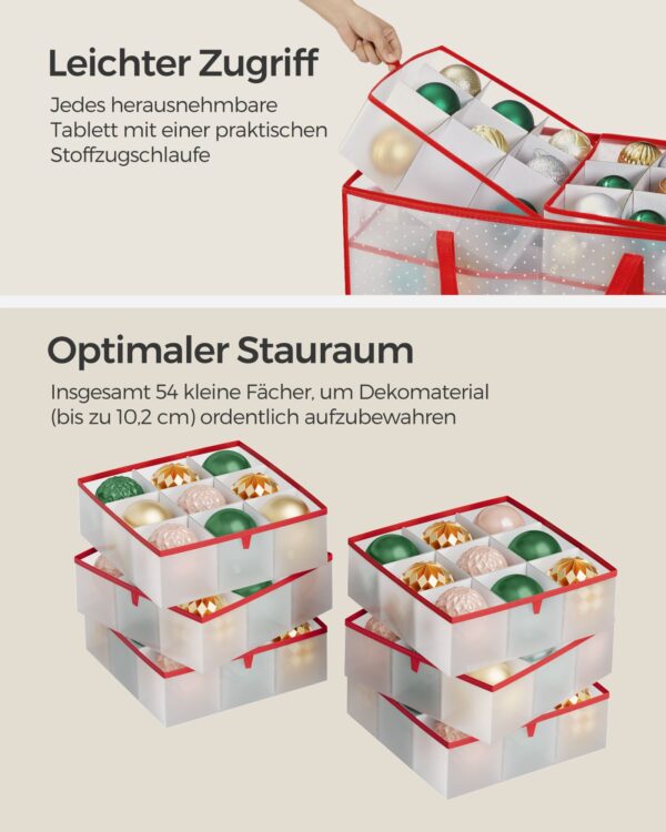 Ši Kalėdų papuošalų laikymo dėžutė yra puikus pasirinkimas tiems, kurie vertina tvarką ir stilių. Nepraleiskite progos įsigyti šį nuostabų produktą ir pasiruoškite šventėms be rūpesčių!