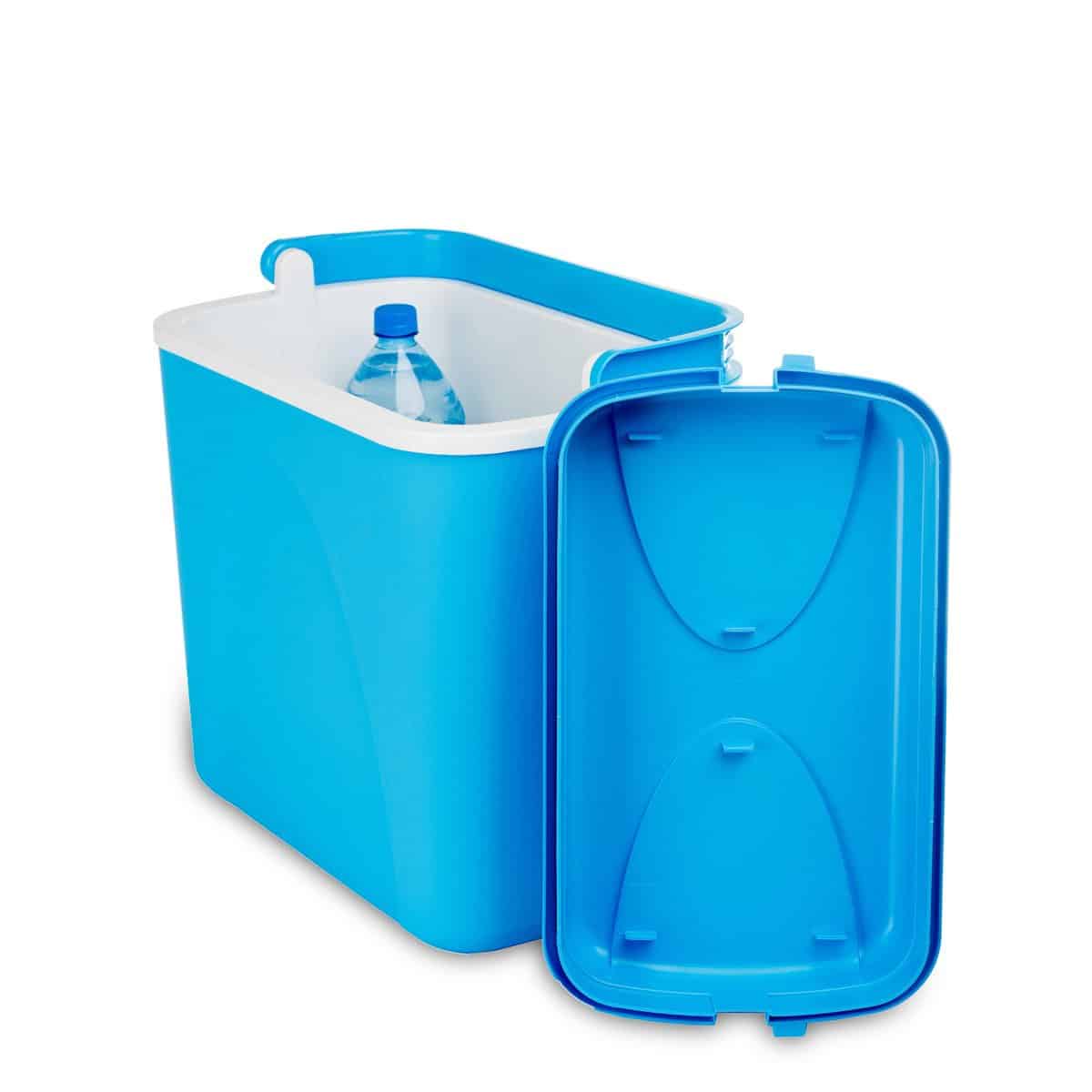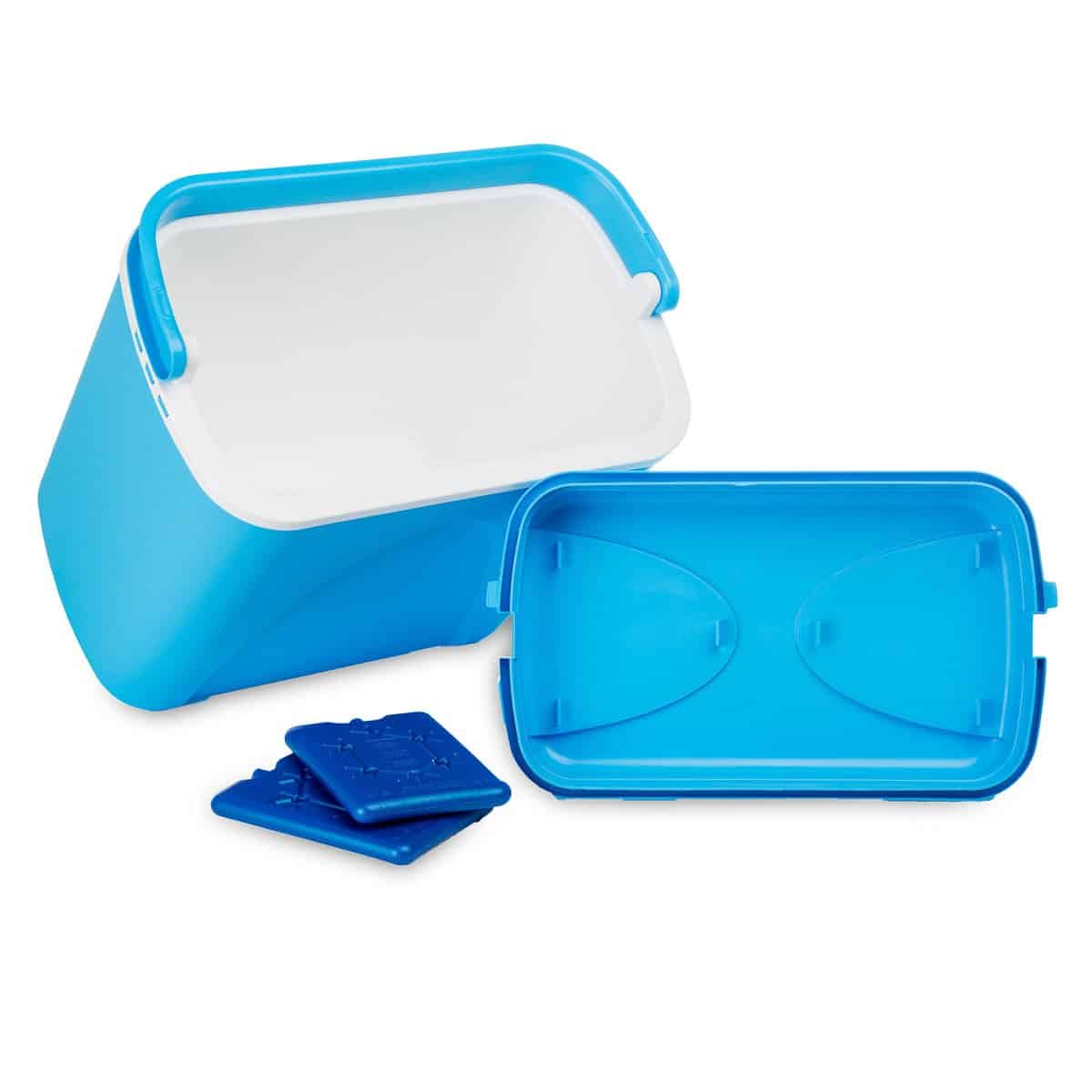 Pasyvus turistinis šaldytuvas pildymui.Nepakeičiamas kelionėms, tvirtos konstrukcijos. Dangtelyje yra tvirtinimai dviem aušinimo intarpams.Labai gera izoliacija,ilgai palaiko temperatūrą ir užtikrina laikomų produktų šviežumą net karštomis vasaros dienomis.Vertikaliai laiko 2L buteliuką. Įrengta patogi rankena su užraktu, apsaugančiu nuo nekontroliuojamo atidarymo. PRIVALUMAI: – Didelė talpa – iki 24L – Lengvas ir patogus transportuoti – Svoris su 2,25 kg papildymu – Du 200 g papildymai nemokamai – Šilumos izoliacija – specialių įdėklų ir polistireno izoliacijos dėka įrenginys palaiko žemą temperatūrą iki kelių valandų – Užraktas – užrakinimo rankenos dėka šaldytuvas neatsidarys transportuojant.su maistu – 24mėn garantija. Mūsų patarimas: Namų šaldytuve jau atšaldytą maistą dėkite į šaldytuvą. Nuvalykite drėgna kempine, galbūt užpilkite šiek tiek ploviklio ir išskalaukite. Šaldytuvą laikykite atidarytą. Gaminio informacija: Išoriniai matmenys: 38,5 (A) x 40,0 x 23,5 cm Vidiniai matmenys: 31,0 (A) x 33,0 x 19,0 cm Spalva: mėlyna talpa: 24 L Svoris: 2,25 kg Technologija: PP / polistirenas