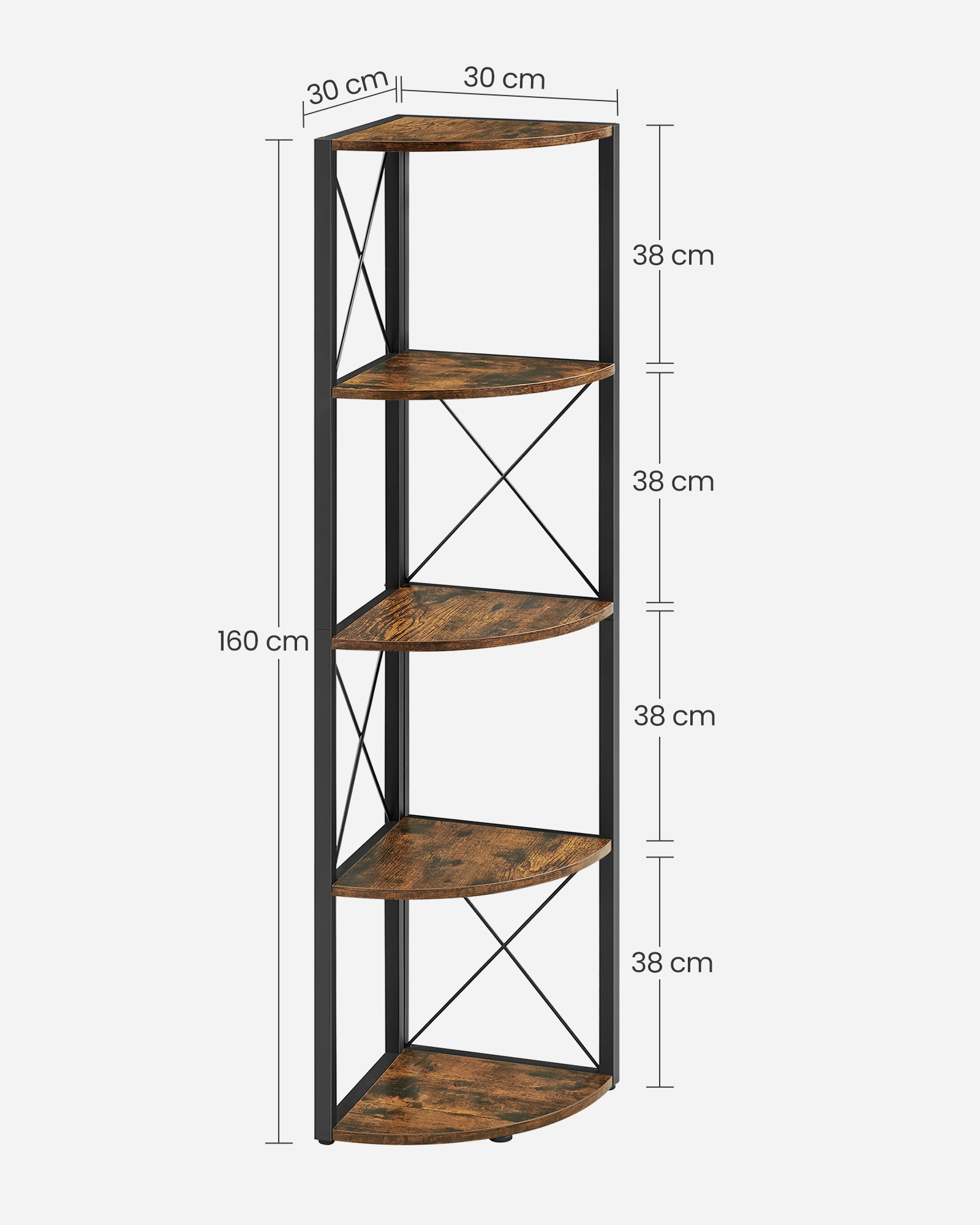 Kampinė Lentyna 30x30x160cm – Vintažinė Ruda/Juoda