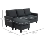 Mūsų kampinė sofa HOMCOM yra minkštai paminkštinta ir suteikia išskirtinį komfortą bei atsipalaidavimą. Sofos komplektas susideda iš dvivietės ir šezlongo. Šezlongą galima lengvai pastatyti dešinėje arba kairėje pusėje, kad tiktų skirtingiems patalpų išplanavimams.