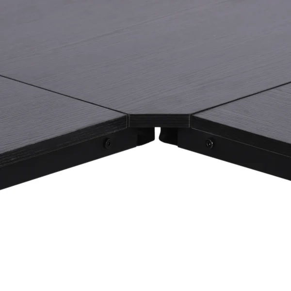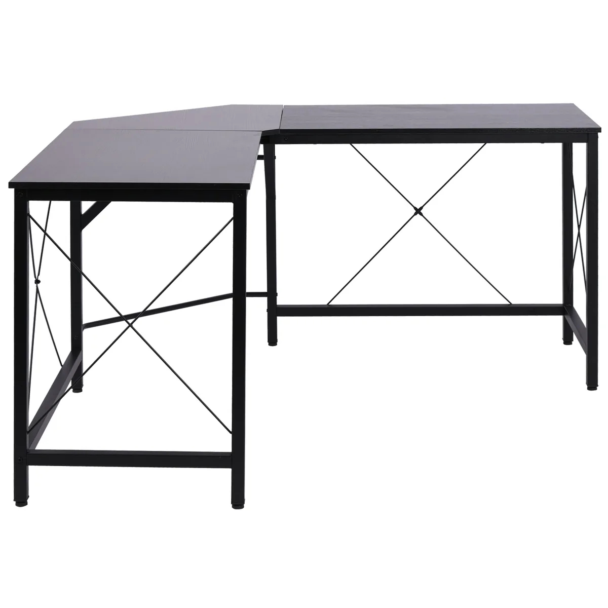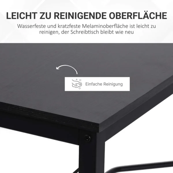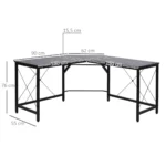 Šis modernus kampinis HOMCOM rašomasis stalas yra puikus sprendimas jūsų namų biurui, žaidimų sąrankai ar hobio kambariui. Kampinis dizainas išnaudoja dažnai ne idealiai išnaudojamą erdvę net mažų kambarių kampuose ir optimizuoja jūsų darbo vietos dydį. Tvirtas plieninis rėmas ir didelis stalviršis su lengvai prižiūrima melamino danga suteikia daug vietos visoms biuro ar amatų reikmėms. Naudodami individualiai reguliuojamo aukščio kojeles, jūsų kampuotas stalas saugiai stovės net ant nelygaus paviršiaus. Prašmatnus ir praktiškas – šis rašomasis stalas tinka kiekvienuose namuose!