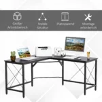 - ✔ Modernaus dizaino kampinis rašomasis stalas: puikiai tinka namų biurui