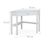 Kampinis rašomasis stalas su stalčiumi 76x107x76cm, baltos spalvos