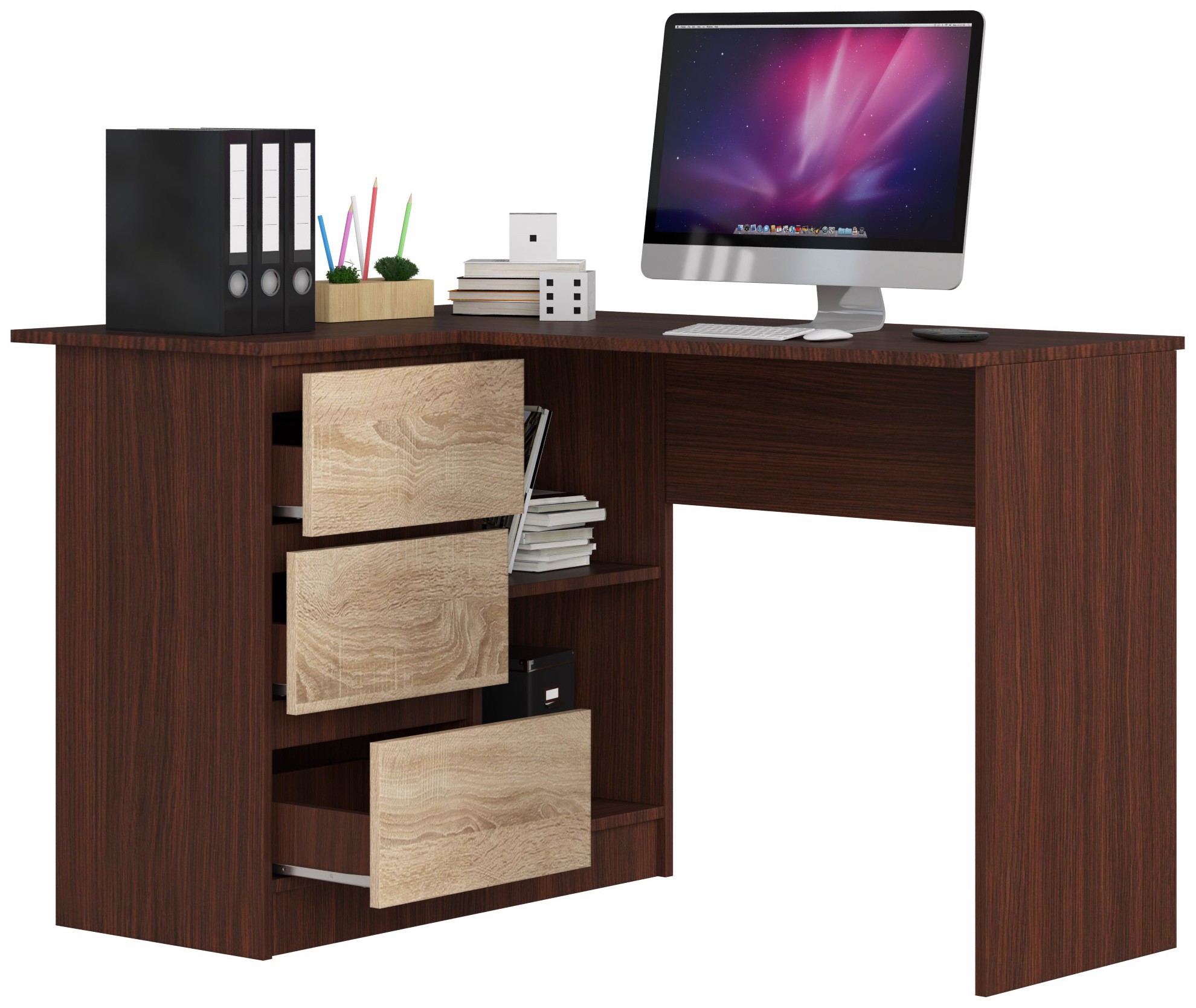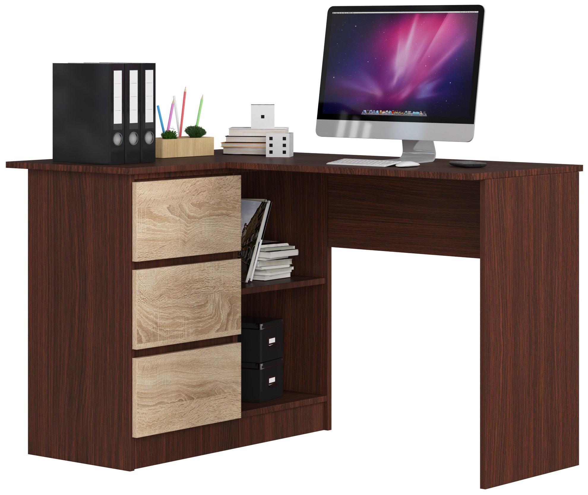 Ruda yra nesenstanti spalva, tinkanti tradiciniam interjerui ir dizaino aksesuarams. Lengvai valomas ir labai elegantiškas, todėl puikiai tinka studijoms namuose ar įmonės biure. Vienas iš daugelio įdomių mūsų internetinės parduotuvės pasiūlymų yra rašomasis stalas, kuriame dera du rudos atspalviai –, tamsiai rudas ir, ąžuolo spalvos. Rašomasis stalas pagamintas iš laminuotos plokštės (16 milimetrų storio), kuri itin atspari trinčiai. Matomi kraštai padengti didelio stiprumo ABS apvadu. Kampinis rašomasis stalas, kurio matmenys 124,5 cm x 77 cm x 85 cm, yra pasiūlymas, kuriam taikoma 24 mėnesių garantija. Baldą sudaro stalviršis, uždara spintelė, dvi atviros lentynos, taip pat trys erdvūs stalčiai. Gaminys skirtas montuoti savarankiškai pagal komplekte esančias instrukcijas. Taip pat raginame sužinoti apie susijusius produktus, kurie padės sukurti funkcionalią ir akį traukiančią biuro erdvę. – Rašomasis stalas iš 16 mm laminuotos plokštės kronospan, atsparios dilimui – Yra daug vietos bet kokiam išdėstymui – Aplankai lengvai telpa lentynose – Stalčiai juda ant metalinių ritinėlių kreiptuvų – Matomi kraštai padengti ABS briauna, kad būtų didesnis atsparumas pažeidimams – Savaiminio surinkimo stalas – Kampinis kompiuterio stalas – Pristatymo vadovas – Garantija 24 mėn. /p>