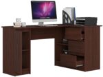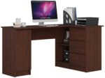 Kampinis stalas yra įdomus pasiūlymas žmonėms, kurie biurą įrengia klasikiniu stiliumi. Siūlome Jums aukšto funkcionalumo baldą, kuris taip pat išsiskiria labai gera kokybe. Patvarus ir patvarus kampinis stalas taip pat yra atsparus pažeidimams, nes naudojama kokybiška baldinė lenta., tamsiai rudas spalva tiks žmonėms, norintiems rinktis nesenstančią klasiką. Mūsų pateiktas pasiūlymas puikiai tiks tiek namų biurui, tiek biuro patalpoms. Garantuojame palankias kainas, taip pat galimybę prie rašomojo stalo priderinti kitus tos pačios kolekcijos baldus. Kviečiame pasinaudoti mūsų parengtu pasiūlymu, kuriame yra aukštos kokybės gaminiai, kuriuose telpa daug kiekvienam biure reikalingų daiktų. Kampinis stalas – tai rašomojo stalo ir komodos derinys, kurį galima naudoti net ir mažuose kambariuose. Nuoširdžiai kviečiame susipažinti su mūsų produktais geriau. – Rašomasis stalas iš Kronospan laminuotos plokštės, 16 mm atsparus trinčiai – Yra daug vietos bet kokiam išdėstymui – Ant lentynų be problemų tilps segtuvai – Stalčiai juda ant metalinių ritinėlių kreiptuvų – Matomi kraštai padengti ABS briauna, kad būtų didesnis atsparumas pažeidimams – Rašomasis stalas, skirtas savarankiškam surinkimui – Kampinis kompiuterio stalas – Pristatymo instrukcija – Garantija 24 mėn.