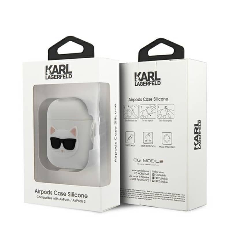 Karl Lagerfeld Choupette 3D – Apple Airpods dėklas (baltas)