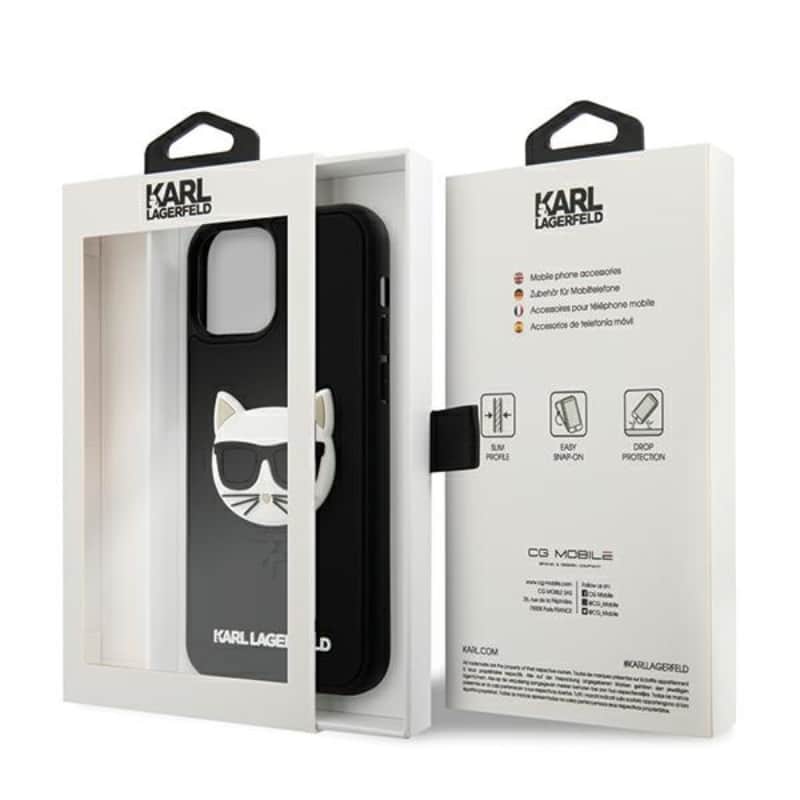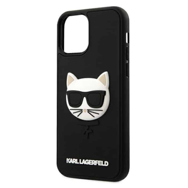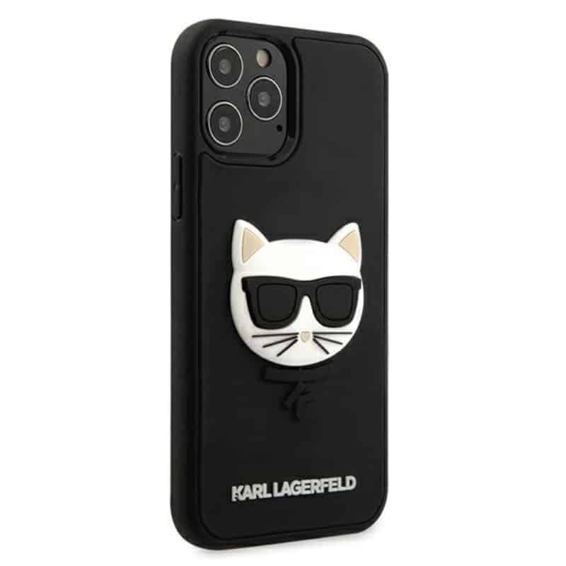 Karl Lagerfeld Choupette Head 3D Guminis dėklas, skirtas iPhone 12 Pro Max (juodas)