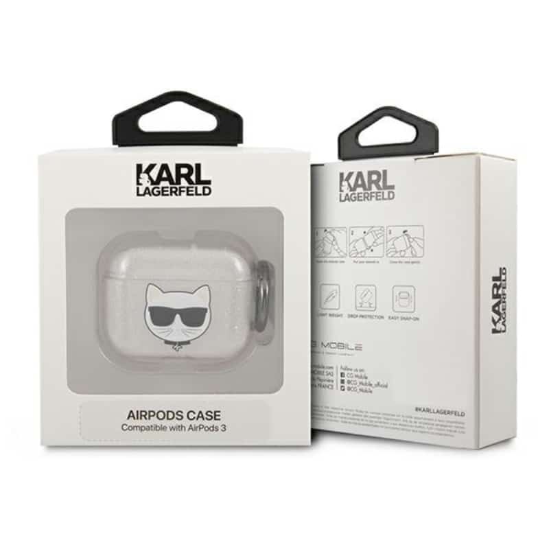 Karl Lagerfeld Choupette Head Glitter – „AirPods 3“ dėklas (sidabrinis)