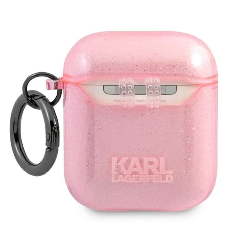TPU dėklas AirPods ausinėms, apsaugantis nuo pažeidimų ir įbrėžimų. Puikiai priderintas ir pasirašytas su dekoratyviniu Karl Lagerfeld logotipu. Be to, rinkinyje yra nuimamas metalinis karabinas, skirtas dėklui pritvirtinti prie pavadėlio ar kelnių diržo.Dėklas turi angą įkrovikliui patogiam įkrovimui.