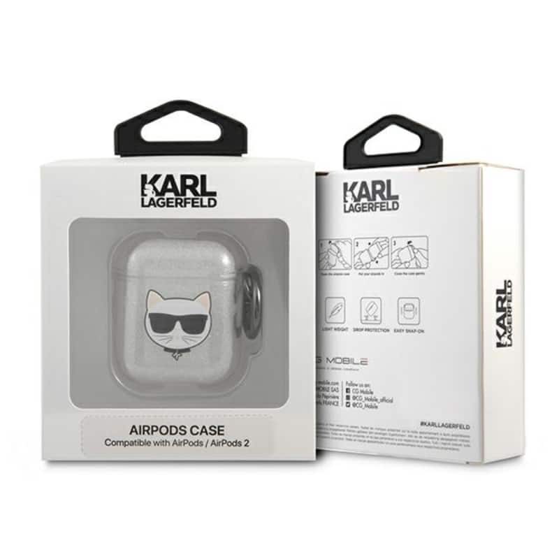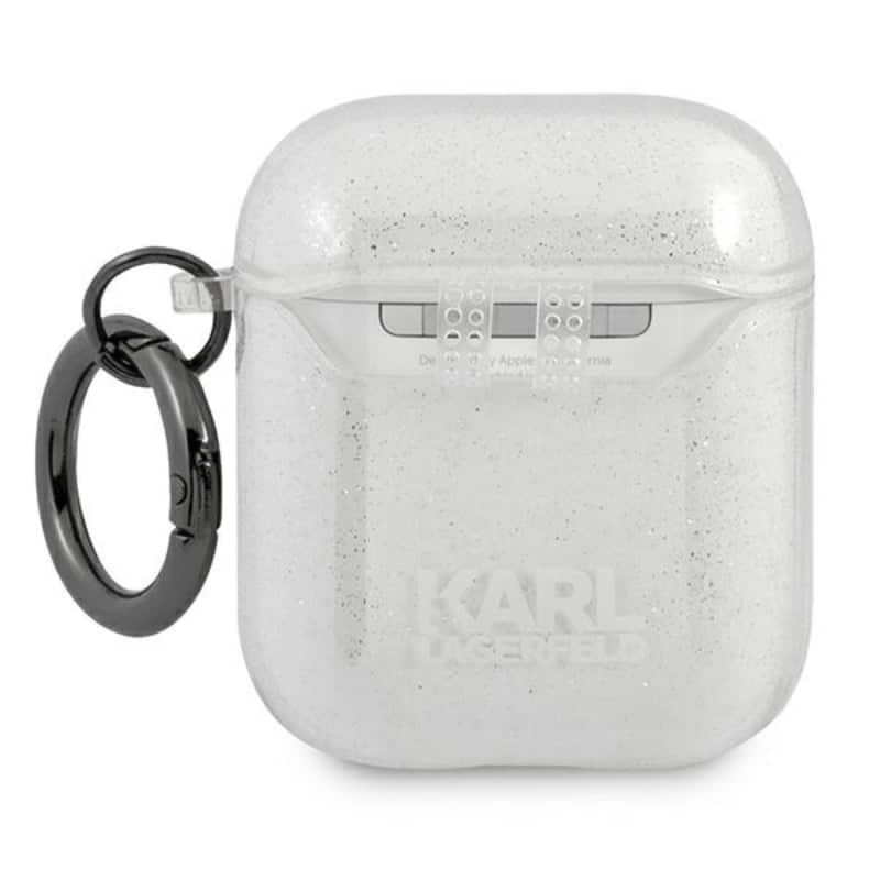 TPU dėklas AirPods ausinėms, apsaugantis nuo pažeidimų ir įbrėžimų. Puikiai priderintas ir pasirašytas su dekoratyviniu Karl Lagerfeld logotipu. Be to, rinkinyje yra nuimamas metalinis karabinas, skirtas dėklui pritvirtinti prie pavadėlio ar kelnių diržo.Dėklas turi angą įkrovikliui patogiam įkrovimui.