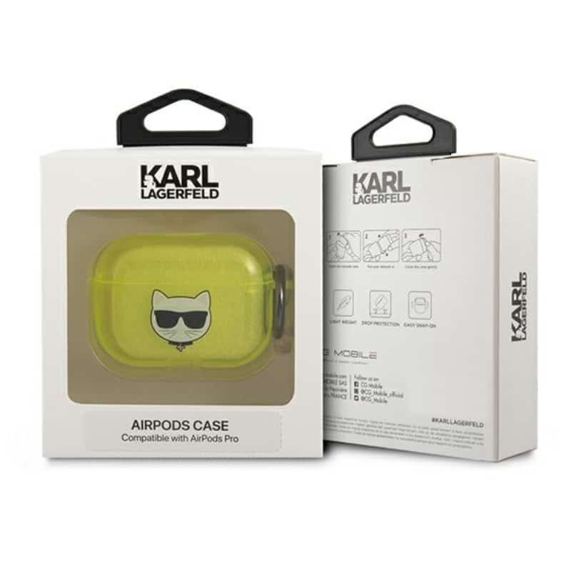 Karl Lagerfeld Choupette Head Glitter – dėklas, skirtas Airpods Pro (fluo geltonas)
