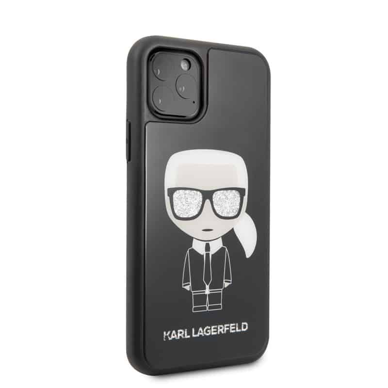 Karl Lagerfeld dvigubo sluoksnio blizgančio grūdinto stiklo dėklas, skirtas iPhone 11 Pro (juodas)