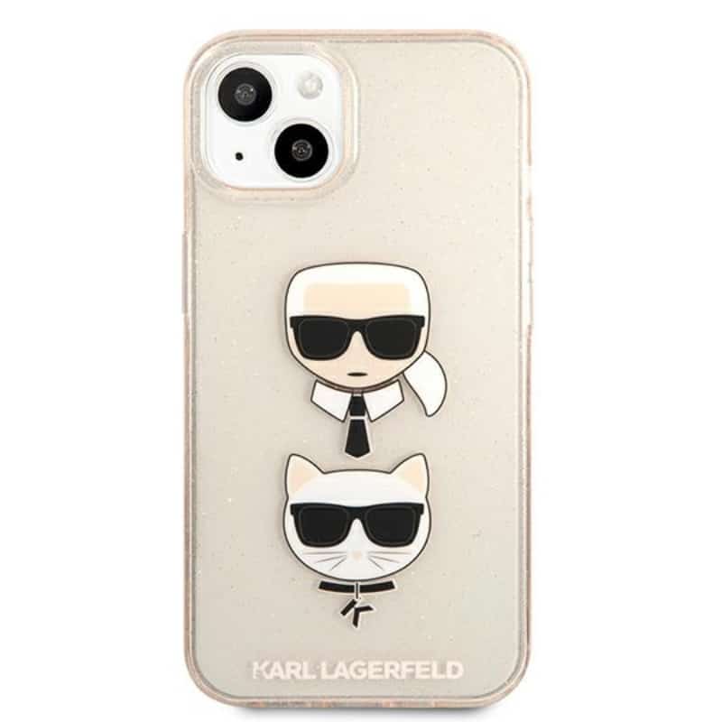 Karl Lagerfeld Glitter Karl & Choupette Head – dėklas, skirtas iPhone 13 (auksinis)