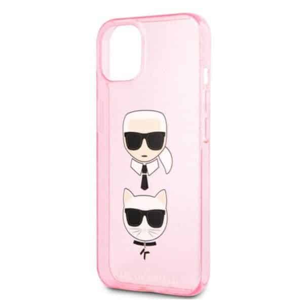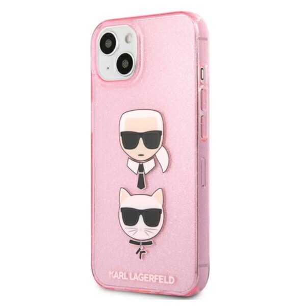 Karl Lagerfeld Glitter Karl & Choupette Head – dėklas, skirtas iPhone 13 mini (rožinis)