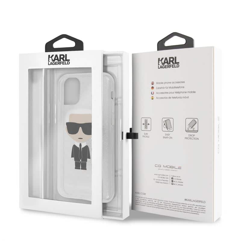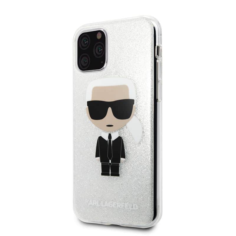 Karl Lagerfeld Iconic Karl dėklas, skirtas iPhone 11 Pro (blizgantis sidabras)