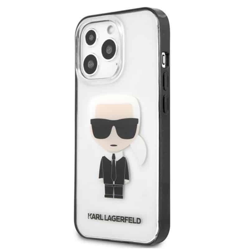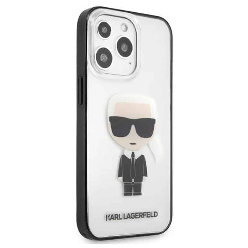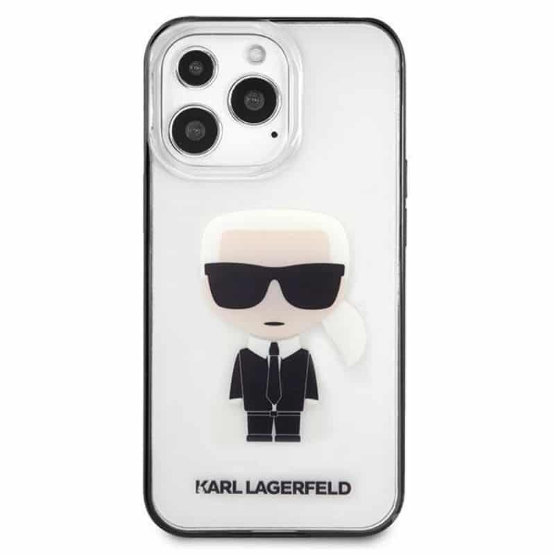 Karl Lagerfeld Ikonik Karl – dėklas, skirtas iPhone 13 Pro Max (skaidrus / juodas rėmelis)