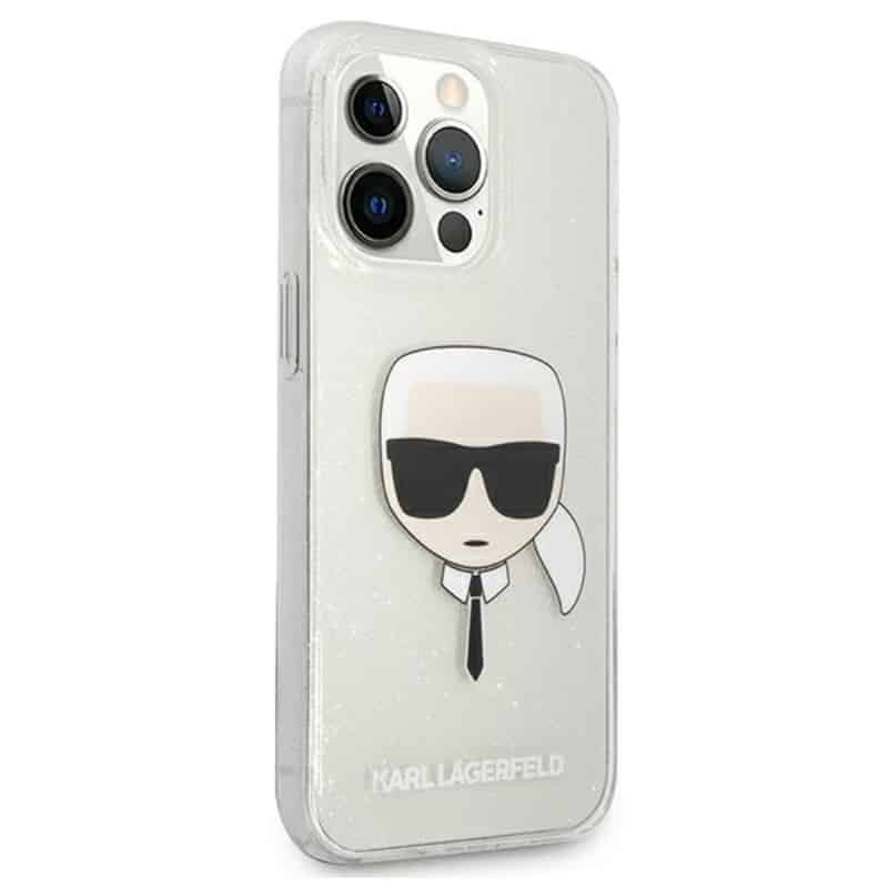 Karl Lagerfeld Karl’s Head Glitter – dėklas, skirtas iPhone 13 Pro (sidabras)