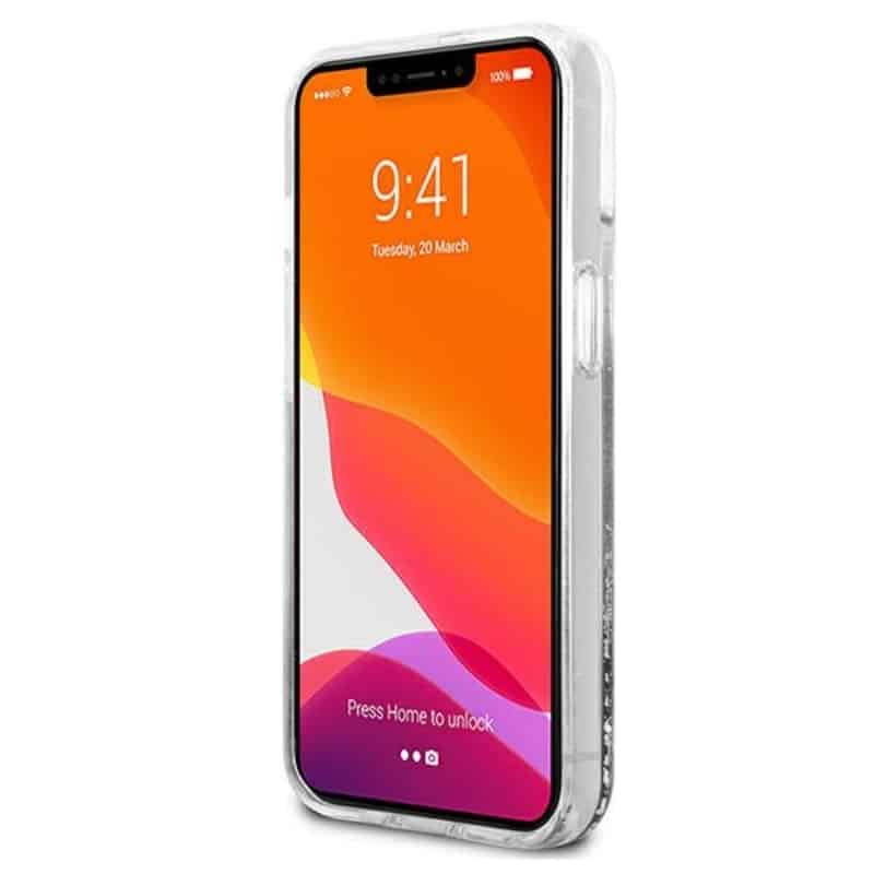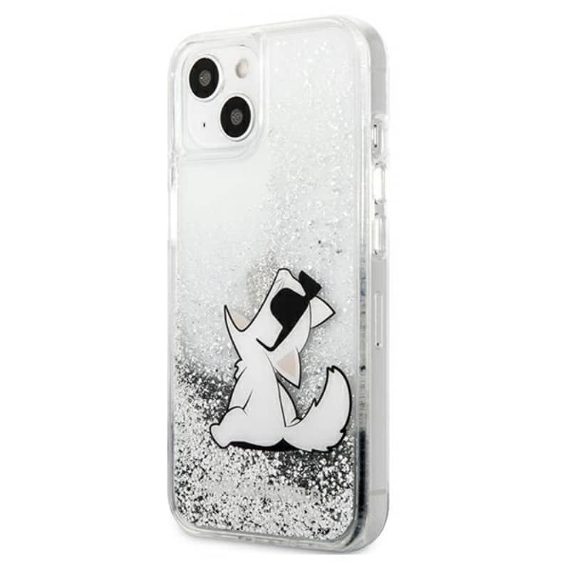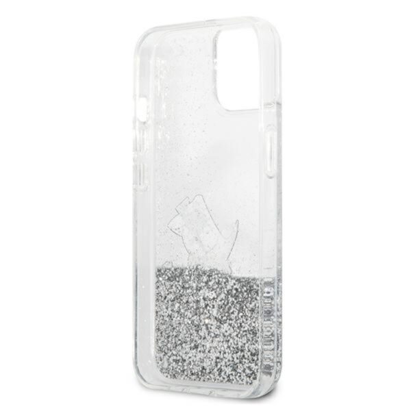 Karl Lagerfeld Liquid Glitter Choupette Fun – iPhone 13 mini dėklas (sidabras)