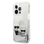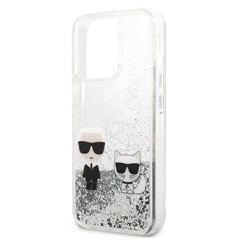 Karl Lagerfeld Liquid Glitter Karl & Choupette – dėklas, skirtas iPhone 13 Pro Max (sidabras)