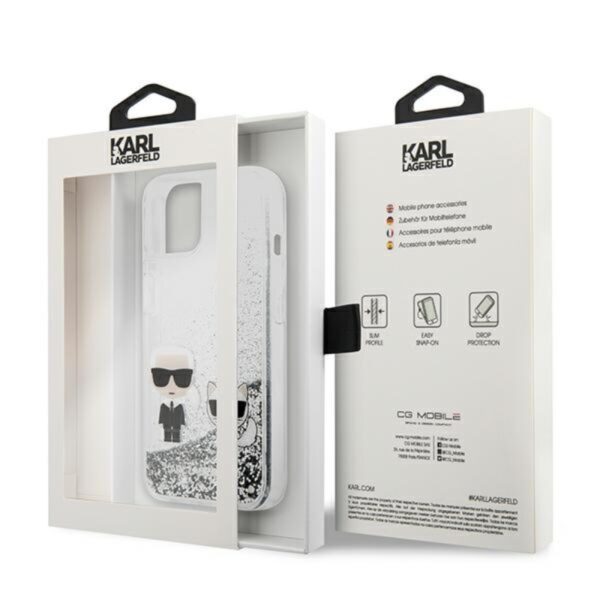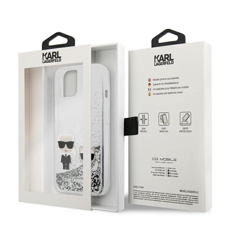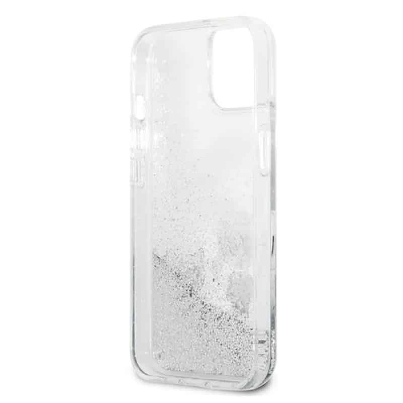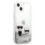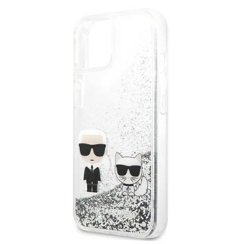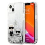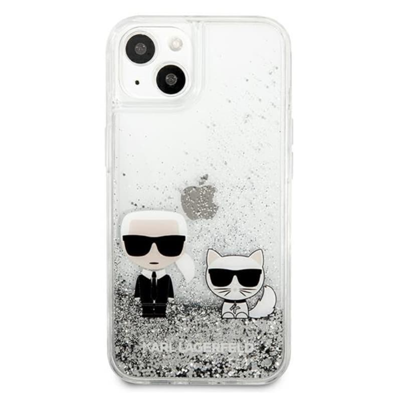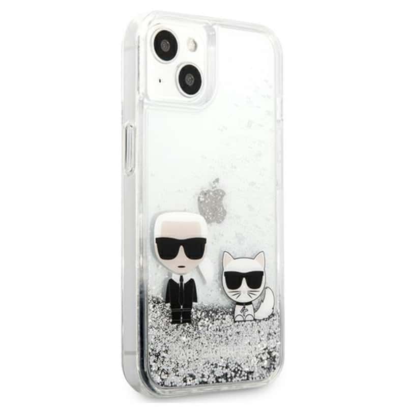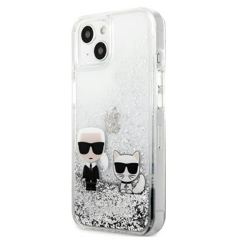Karl Lagerfeld Liquid Glitter Karl & Choupette – iPhone 13 mini dėklas (sidabras)